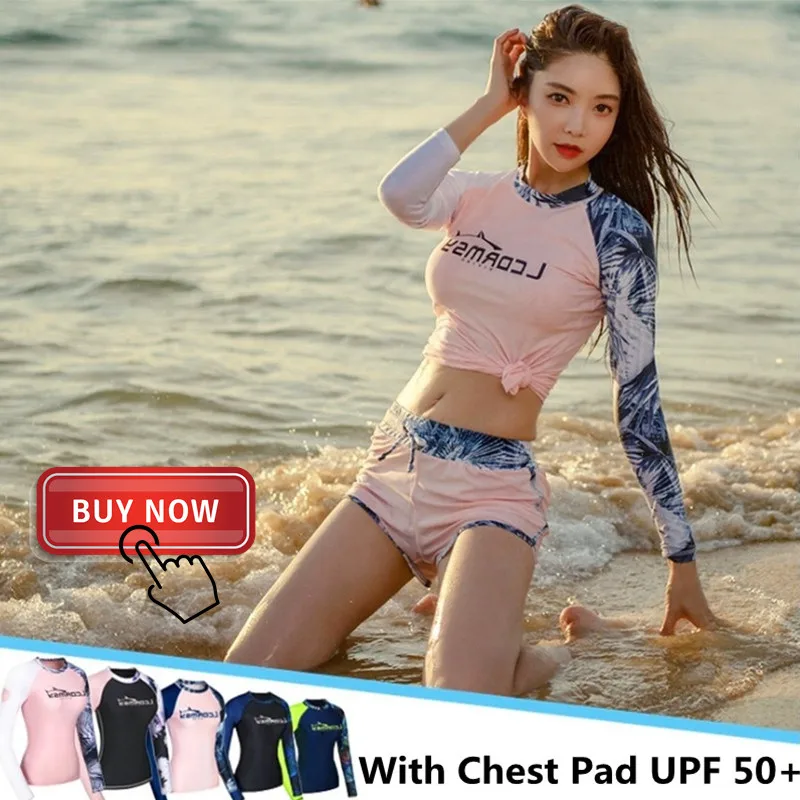 Женские гидрокостюмы с цветочным принтом, рубашки для серфинга, пляжные купальники с длинным рукавом, защита от солнца UPF50 +, купальники для снорклинга, 2 шт.