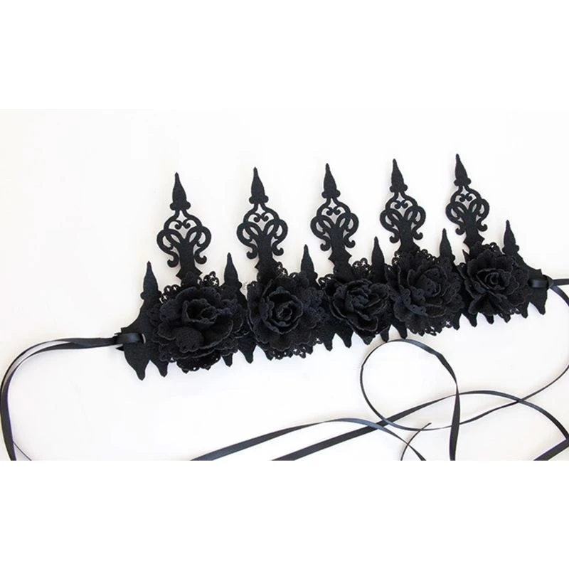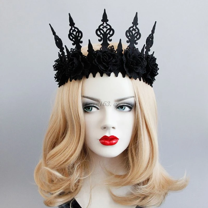 Леди голова королевы венок Винтаж, готика, черный Корона розы Тиара повязка на голову Хэллоуин вечерние маскарадные аксессуары для косплея