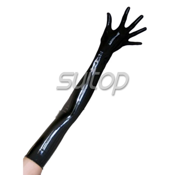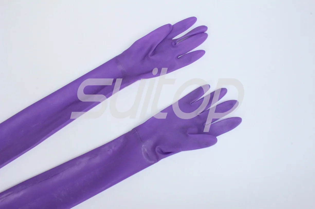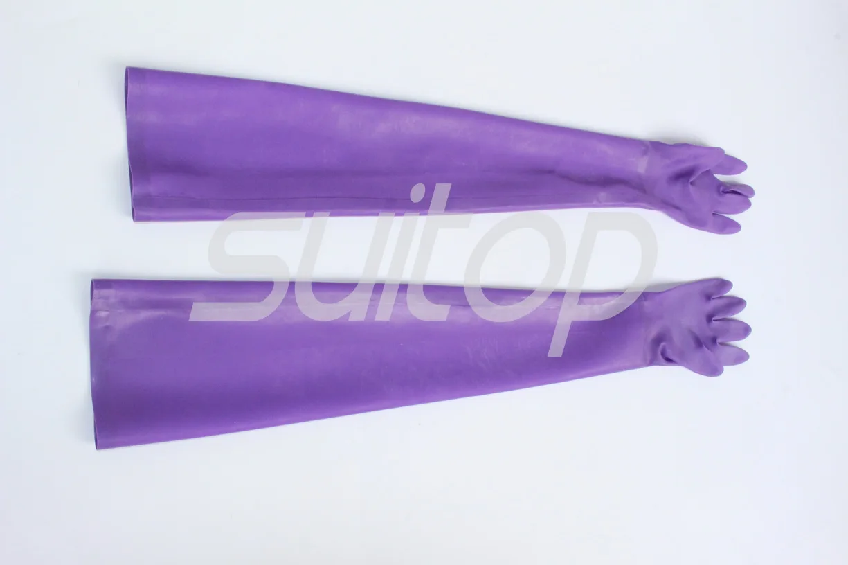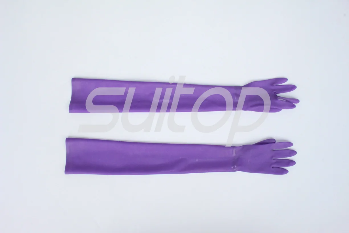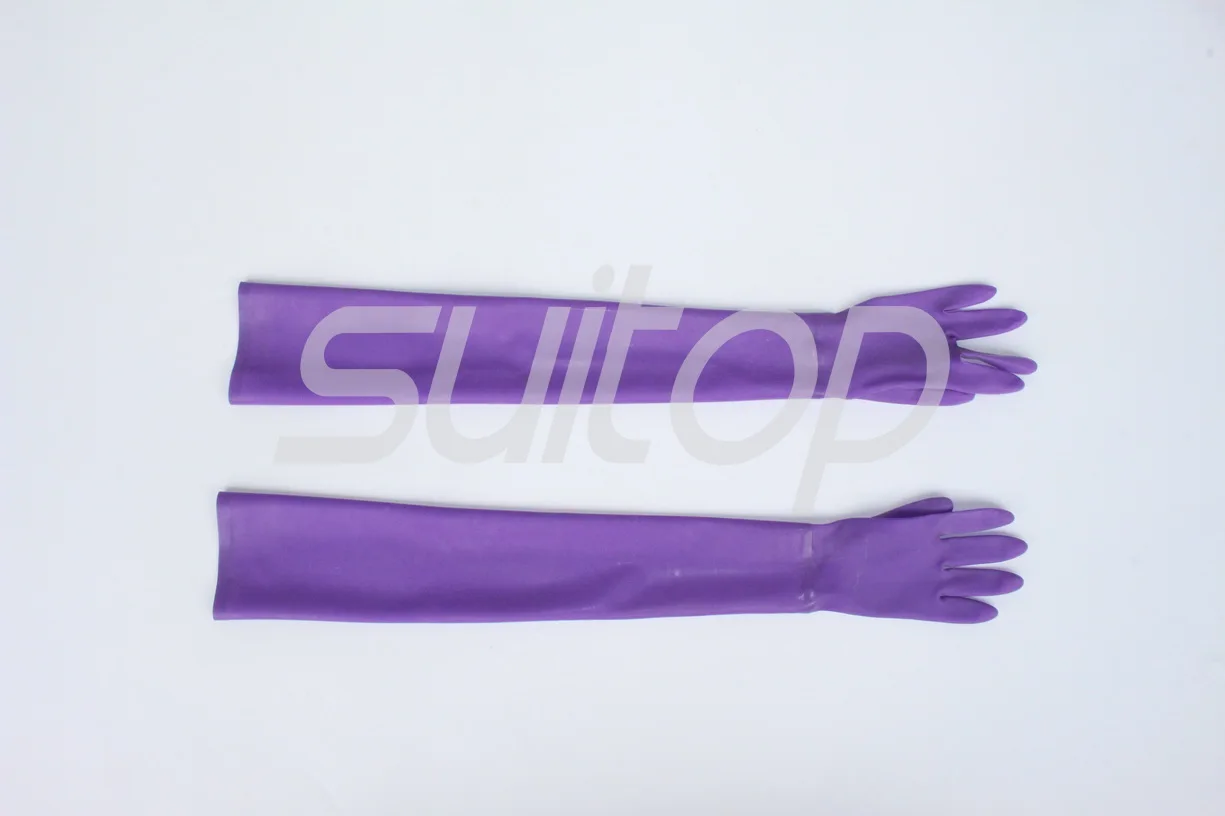 Сексуальные резиновые латексные длинные перчатки фиолетового цвета
