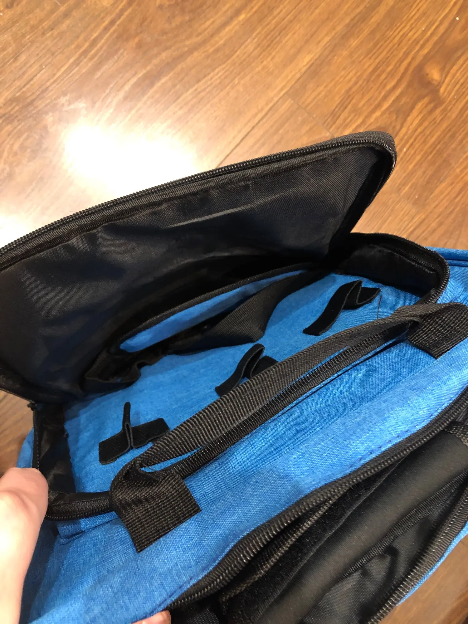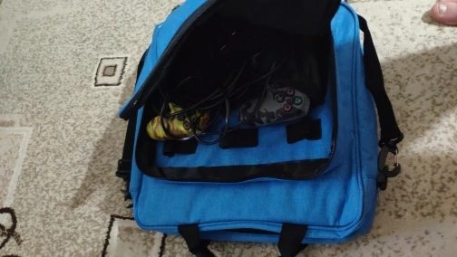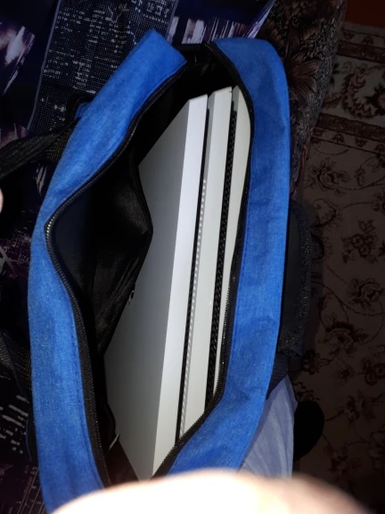 Сумка хорошая. Правда ремень через плечо немного коротковат, если любите носить сумки в районе пояса, но можно прицепить от любой другой сумки. Консоль влезла хорошо. Немного свободного места там ещё есть, но не критично. В остальные отделения можно положить и диск и два геймпада и провода. Доставка быстрая, продавца советую. Синий цвет огонь выглядит