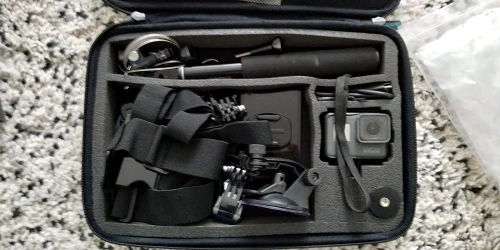 Сумка хорошая, жесткая. SJCam разместил - камеру, 2 аккумулятора, куча креплений, аквабокс, зарядка. В комплекте металлический карабинчик, хорошо. ДОставка быстрая, меньше 3-х недель до Сибири.