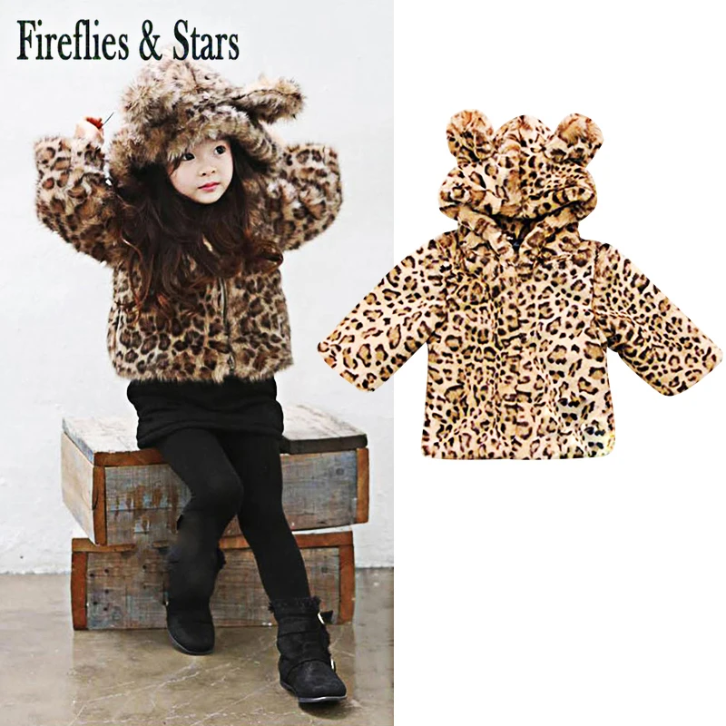 Осенне-зимняя теплая куртка для малышей куртка с капюшоном для девочек детское дизайнерское пальто Детская верхняя одежда, модная леопардовая куртка с искусственным мехом для детей от 1 до 9 лет