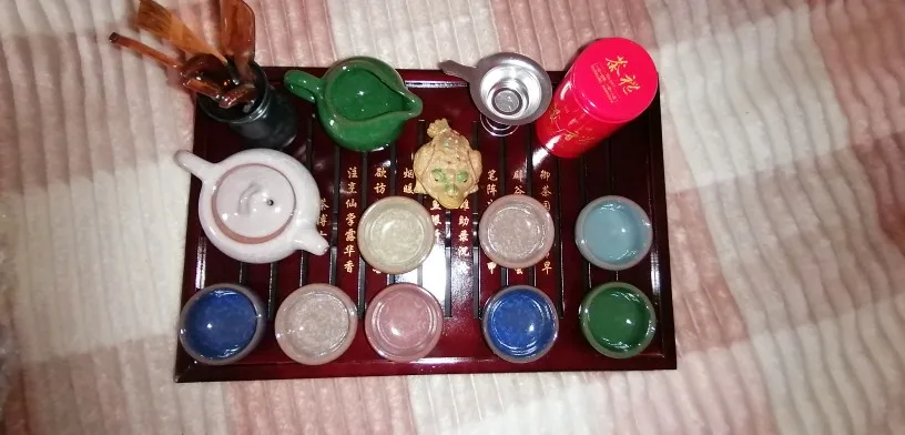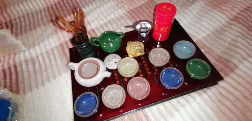 Продавец отправил все быстро. Правда, не положил 2 чайные фигурки глиняных мальчиков. 2 посылки доехали за 2 недели до Башкирии. Прекрасно упакованы. Мне набор понравился. Для начинающего tea-мастера то, что нужно. Особенно радуют пиалки и чайник своей удивительной глазурью. Полный чайник (без заварки) полностью наполняет чахай, а чахай полностью наполняет 4 пиалки. Так что церемонию на 3-х человек вполне можно проводить) Хотя выглядит чайник очень маленьким, но вмещает 200 мл жидкости. Заказом довольна. Благодарю!