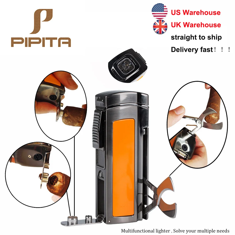Ветрозащитная бутановая зажигалка PIPITA, многоразовый фонарь, 4 зажигалки с красным пламенем, зажигалка для сигарет