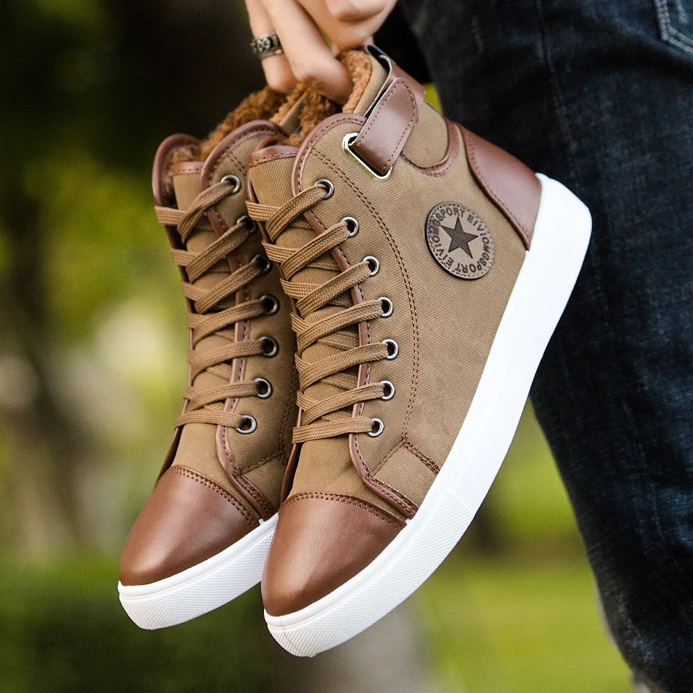 Мужские ботинки с высоким берцем, Теплые повседневные парусиновые ботинки на меху, кожаная обувь высокого качества для осени, 2020