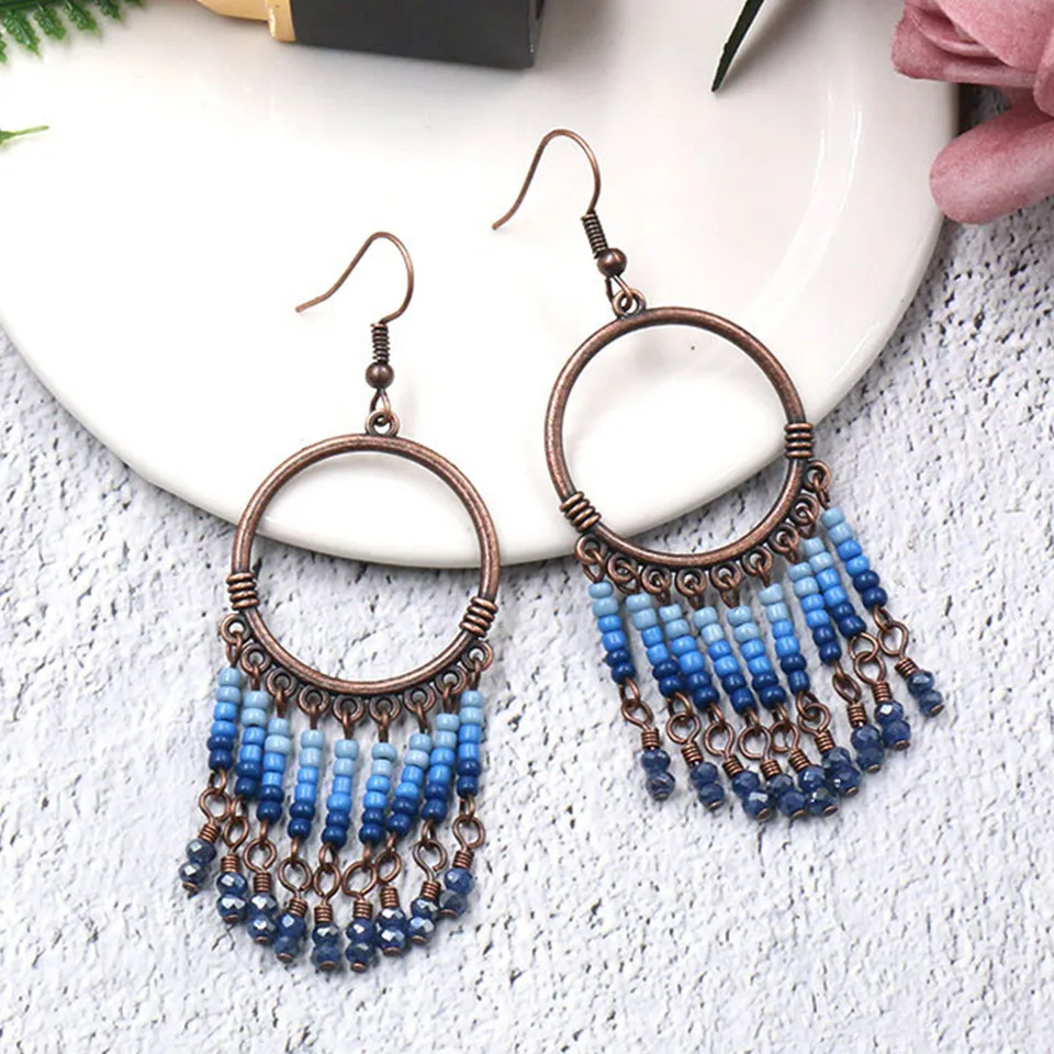 Модные Разноцветные деревянные серьги-подвески с камнями, французские круглые серьги для женщин и девочек, ювелирные изделия, серьги с кисточками и кристаллами
