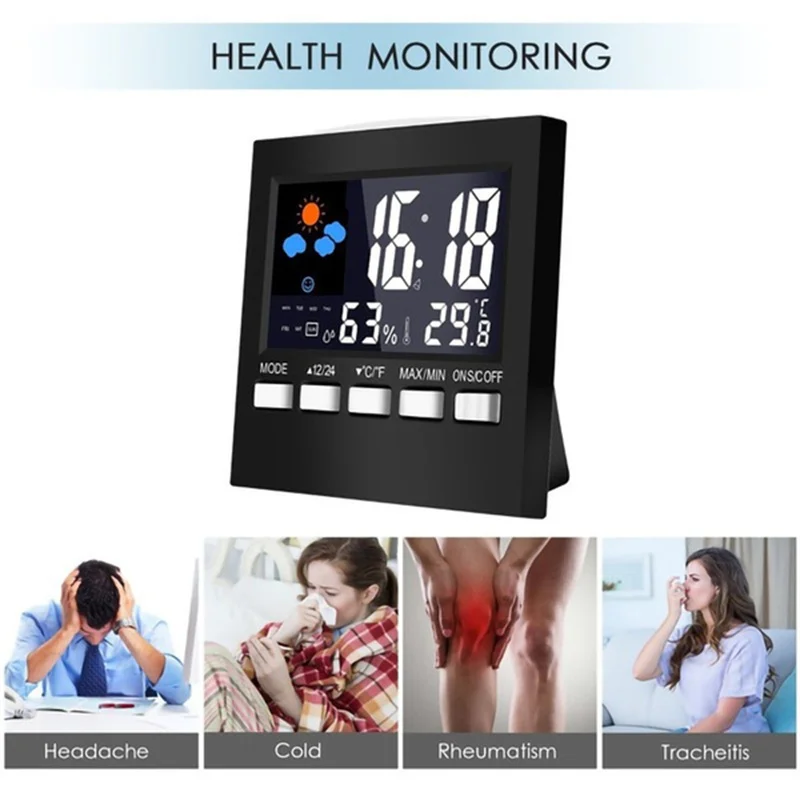Цветной ЖК-цифровой термометр гигрометр Измеритель температуры и влажности прогноз погоды календарь Метеостанция тестер будильник