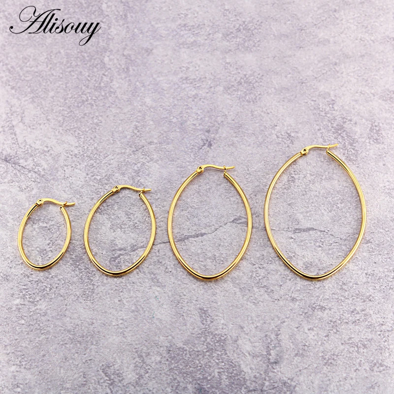 Женские серьги-кольца Alisouy, модные большие круглые сережки из нержавеющей стали золотого и серебряного цвета в стиле стимпанк, 1 пара