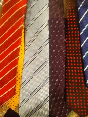 Галстук точно такой же, как на фотографиях, с еще более ярким цветом. Ткань хорошая, плотная и блестящая. У вас нет абсолютно ничего, чтобы завидовать галстукам, которые стоят в 20 раз больше.
