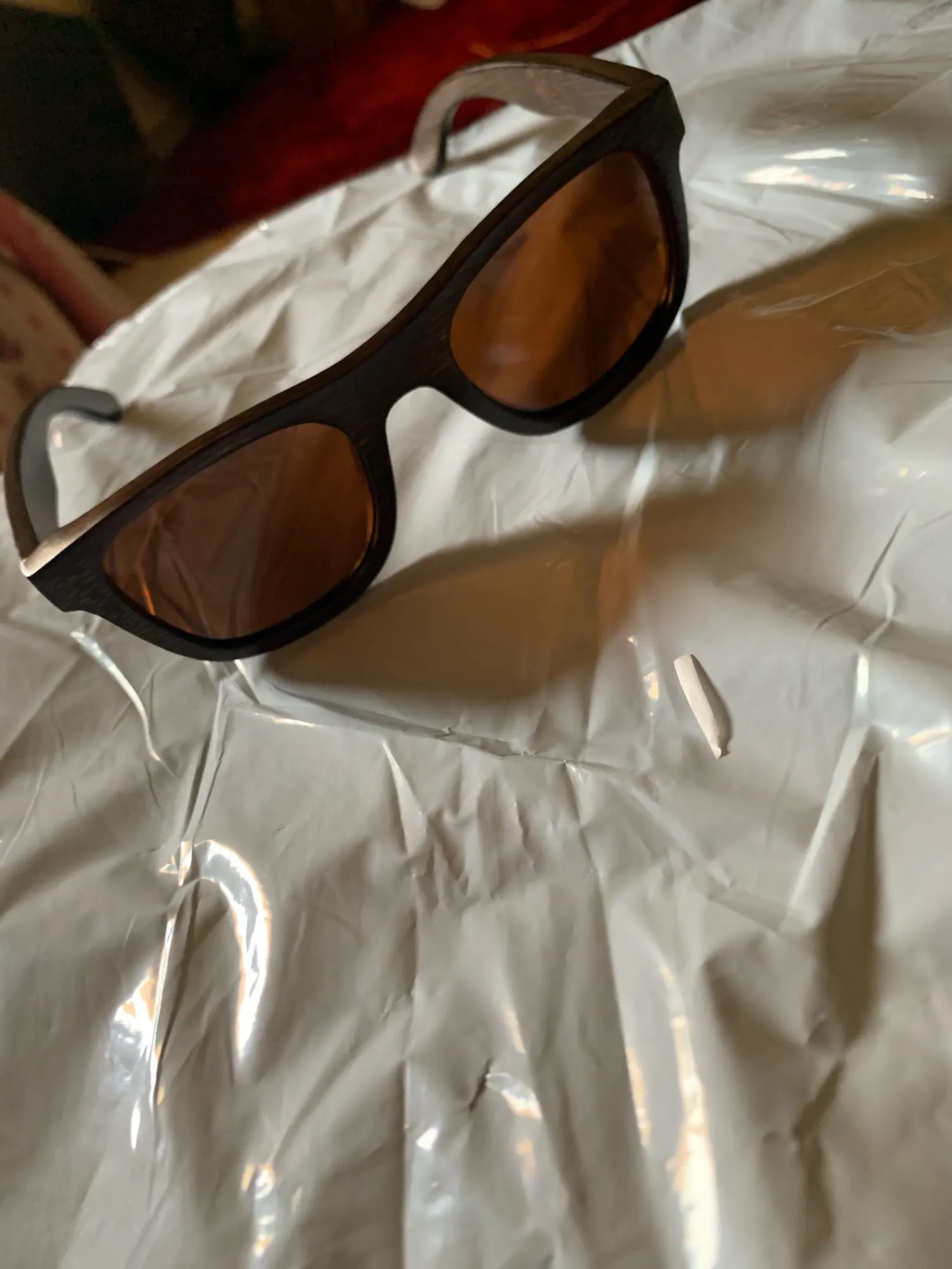Отличные прикольные очки, реально дерево. Шли месяц.