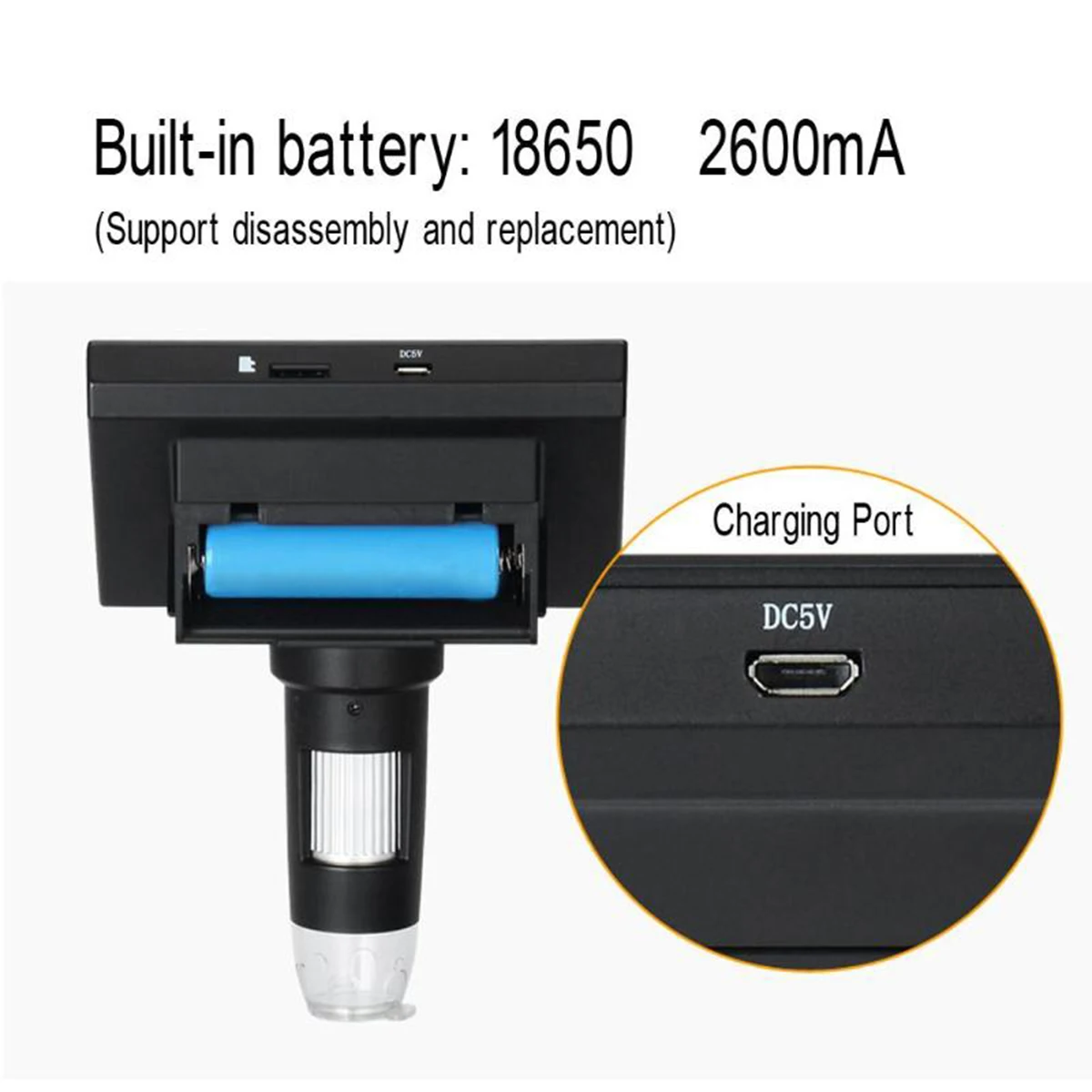 Посылка включает в себя:1 х микроскоп1 х основание1 x металлический столб1 x Регулируемый держатель1 х USB кабель1 х Руководство пользователя Особенности:1. Полные функции, четкое изображение, тонкая работа, замена аккумулятора, подключение к компьютеру, компактный и портативный, поддержка до 12 языков и т. д.2. Встроенный дизайн с ЖК-экраном 4,3 дюймов, не нужно подключаться к компьютеру.8 светодиодный ных ламп для освещения в условиях слабой освещенности, и яркость регулируется.3. Встроенный аккумулятор: 18650 2600mA (поддержка разборки и замены)4. 2 миллиона пикселей Технические характеристики:Название модели: DM4Размер экрана: высокий экран 4,3 дюймовДатчики: Высокоэффективные оптические пластиныОсновной чип управления: специальный мастер-контроль 16 бит DSPLenscoctive Размер: 1/6. 5"Разрешение фото: VGA; 1,3/3/2 MРазрешение видео: VGA; 720 PФормат данных: JPG/AVIДля режима фокусировки: ручная работаФормат изображения: JPG/BMPКратным увеличением: 1000Источник света: 8 светодиодный ных ламп (регулируемая яркость)Для диапазона фокусировки: 10 ~ 40 мм (для наблюдения за дальним видом)Разрешение ПК и скорость передачи изображения: 640*480/26fps, 1280*720/26fpsБаланс белого автоматическийЭкспозиция автоматическийPC Операционная система: Windows xp, win7, win8.1, win10, для mac OSx10.5 или вышеЯзык поддержки: 12 языков (английский, упрощенный китайский, традиционный, китайский, португальский, японский, французский, немецкий, корейский, итальянский, Нидерланды, Россия, Испания, Арабский)Структура объектива: 2G + IRДиафрагма: F4.5Перспектива объектива: 16 °Интерфейс и метод передачи сигнала: Micro/usb2.0Рабочая температура:-20 °C ~ + 60 °CРабочая влажность: 30% ~ 85% RhРабочий ток: 330mAПотребляемая мощность: 1,65 ВтЦвет: черныйРазмер изделия: 16*12*6,5 см Примечание:-Из-за фотографии и различных мониторов ПК цвет предметов может незначительно отличаться, из-за ручных измерений размер может быть немного неточным. Ваше понимание будет высоко оценено.