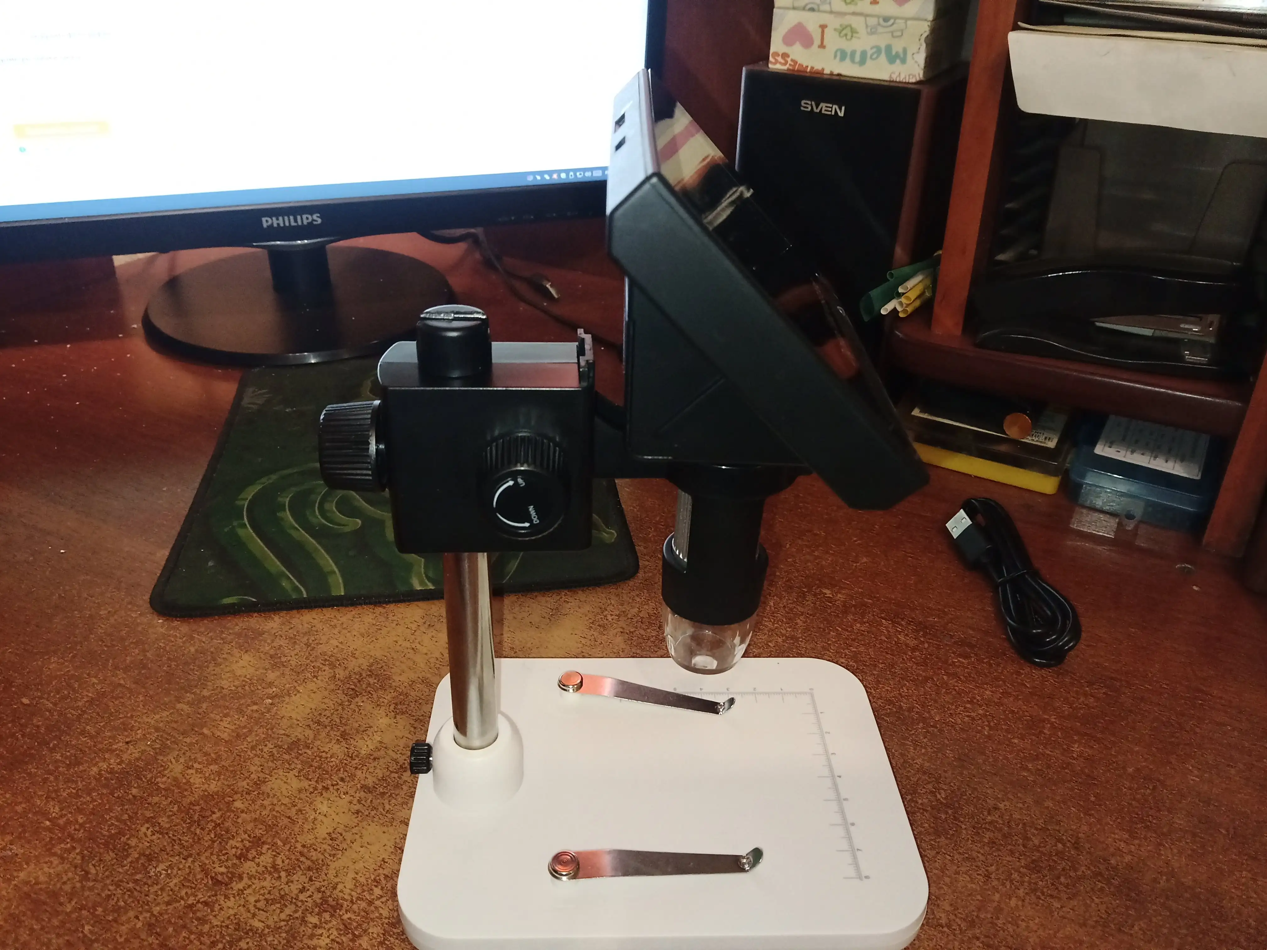 микроскоп пришел. заявленная характеристика увеличения в 1000 раз конечно враки. в маленькой книжке в комплекте о размере зума ни слова. но в целом аппарвт норм.