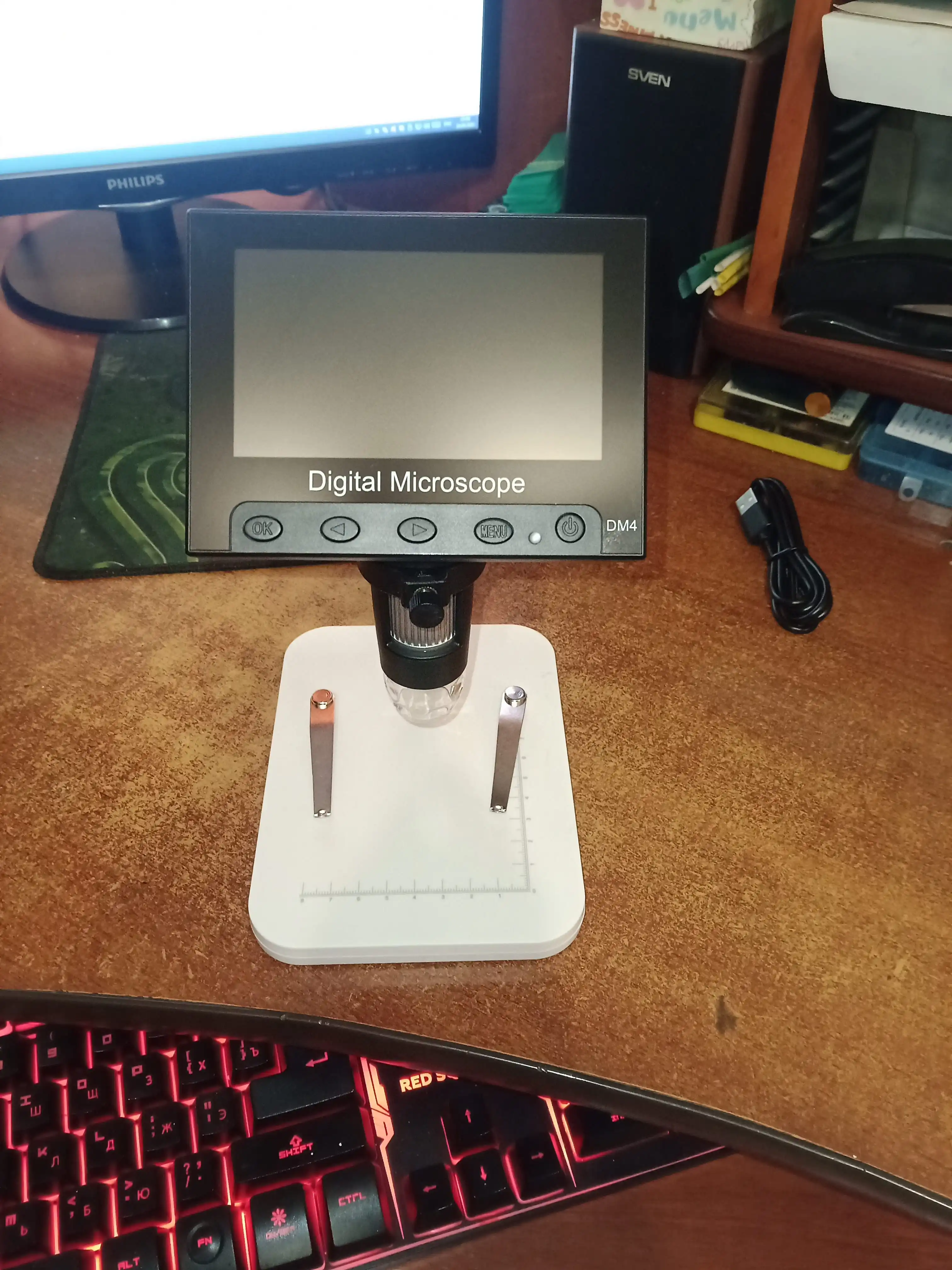 Цифровой электронный микроскоп, работа от USB, ЖК-дисплей DM4 4.3" с адаптером видеографики 1000x2.0MP, 8 светодиодов, подставка для ремонта материнской платы, выключатель питания