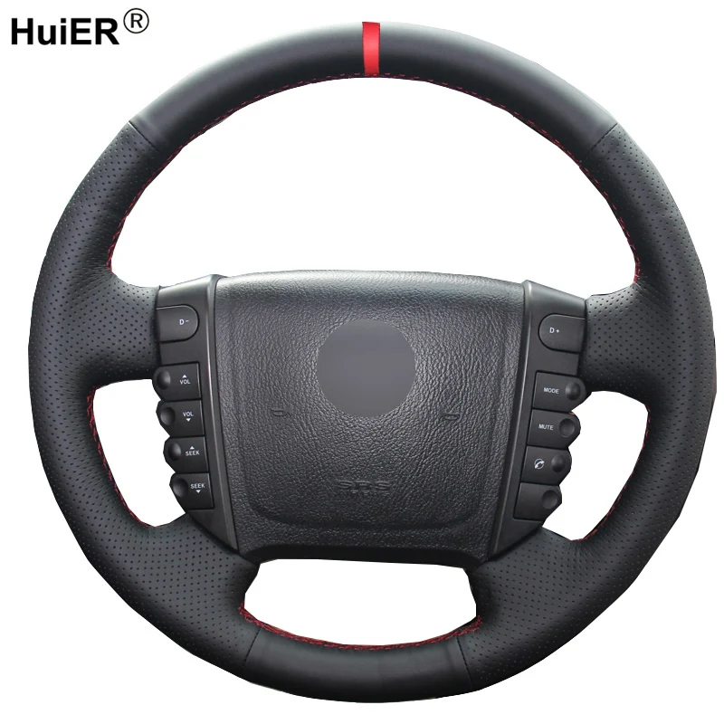 Черная кожаная чехол рулевого колеса автомобиля HuiER ручной работы...