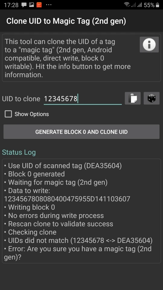 Block 0 is not writtable with Android app Mifare classic