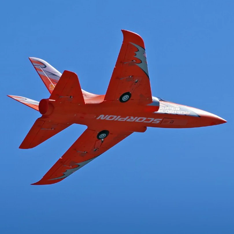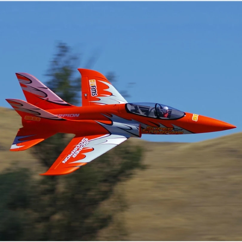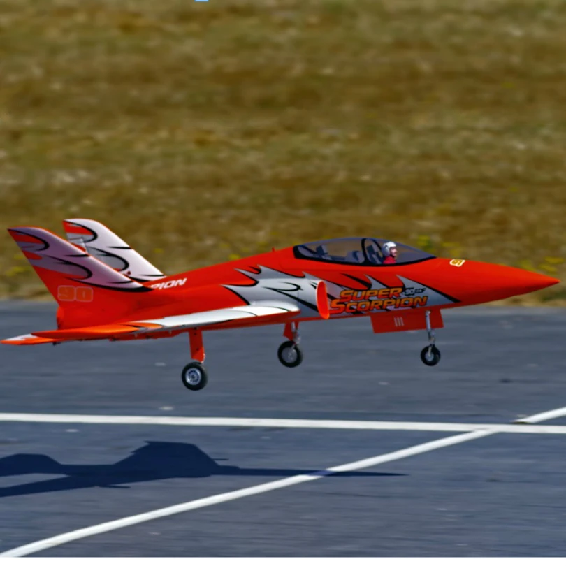 Суперскорпион размером 90 мм сохраняет все превосходные особенности предыдущего суперскорпиона размером 70 мм, улучшая структуру модели и добавляя функцию лоскута. При работе с новой системой питания, она отлично выполняет высокоскоростные или стандартные скорости полета. Кроме того, он оснащен обработанным CNC амортизированным металлическим шасси, передним колесом диаметром 50 мм и задними колесами диаметром 68 мм, они отлично подходят для взлета и посадки на аэродромах с твердым и травяным покрытием.