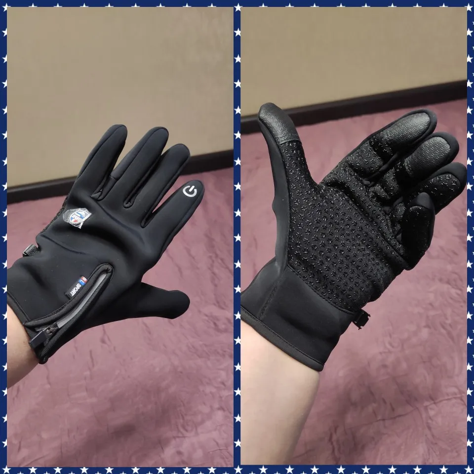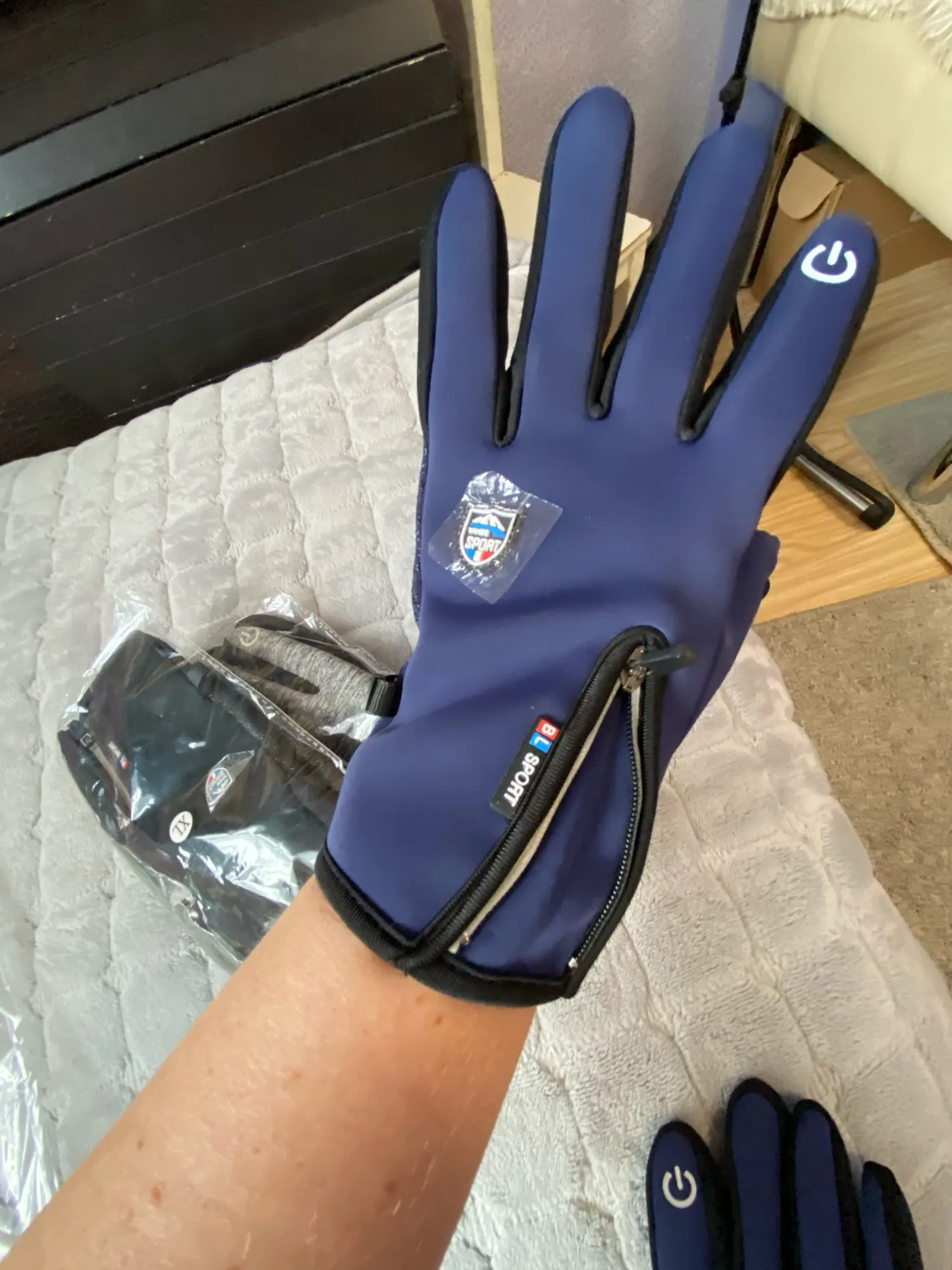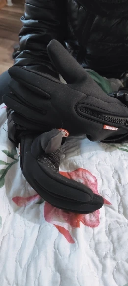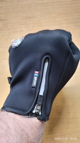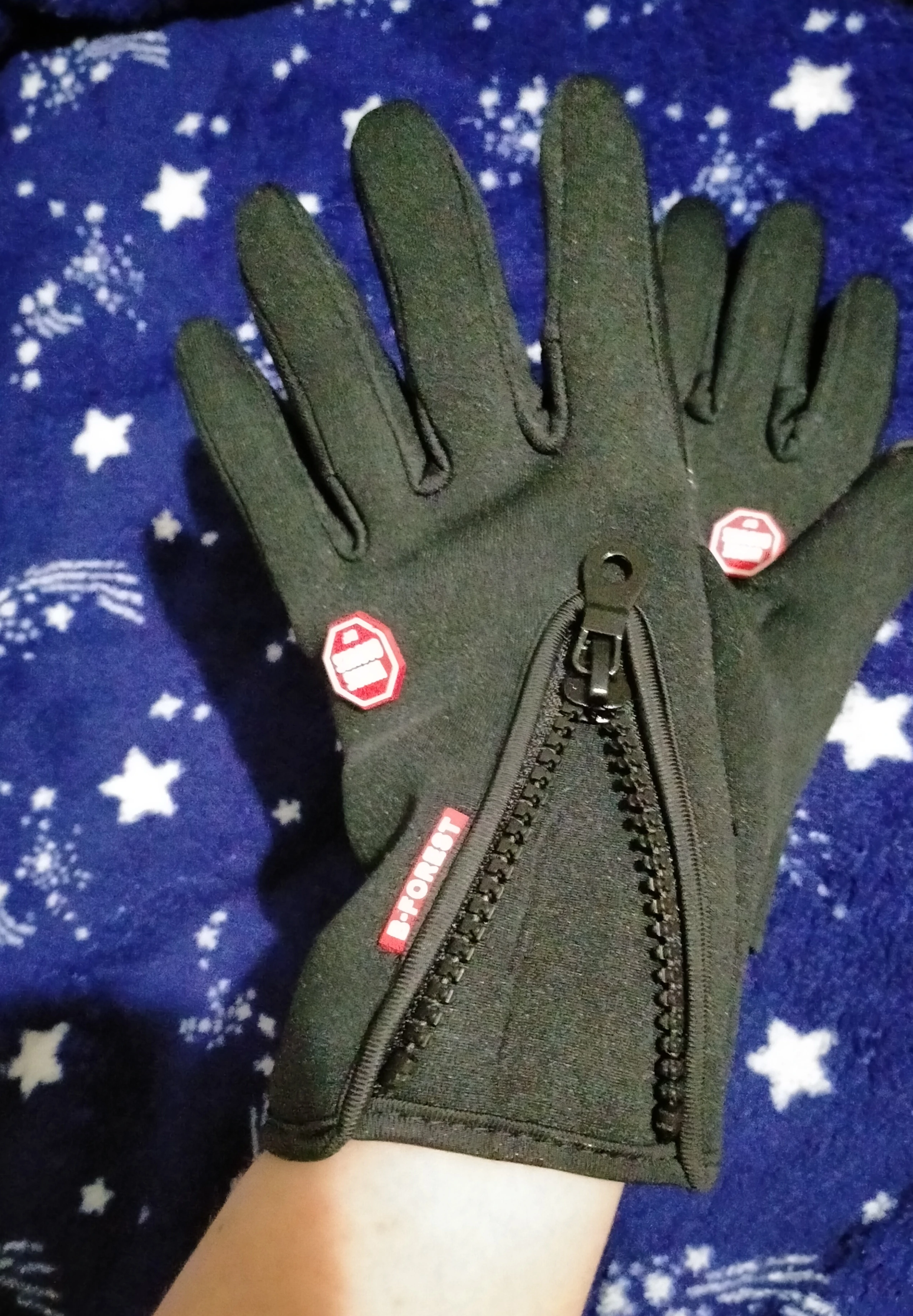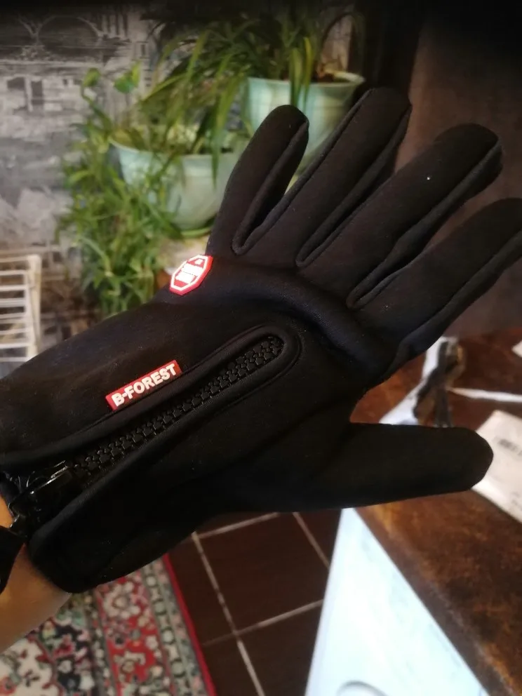 Перчатки неплохо смотрятся визуально, но есть некий дискомфорт когда надеваешь в стыках меж пальцам. В остальном приятный материал, сенсор телефона реагирует на пальцы, но это все равно будет неудобно. Водонепроницаемость не проверял. Сомнительно выглядит молния, но посмотрим. Имеют небольшой запах