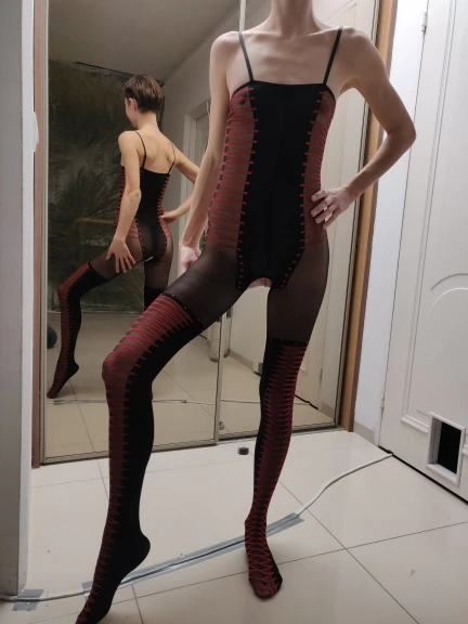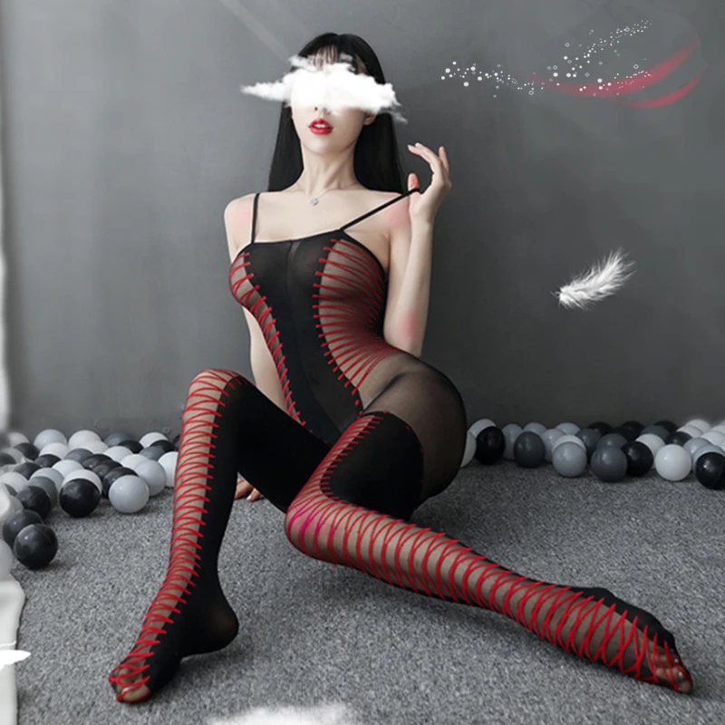 Женские эротические колготки с открытой промежностью, ультратонкие прозрачные чулки колготки с завышенной талией, эротическое белье в полоску с красным крестом