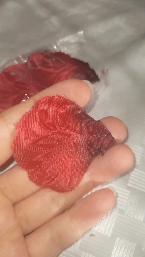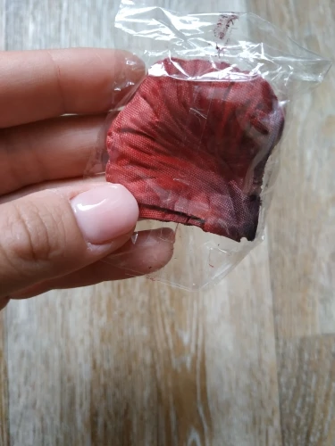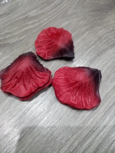 Pétales de roses de couleur bien rouge, correspond à la description. La taille est respectée. Rien n'a dire sur la qualité, c'est parfait. Je pense qu'il y a 100 pièces même si je n'ai pas compté. Pas de communication avec le vendeur.