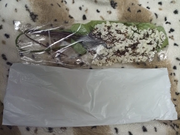 доставка недели три до Хакасии,на почту,отслеживался.заказа по три ветки обеих расцветок,пришли с согнутыми стеблями упаковка в пакет,фото сделала сразу как получила и распаковала при при вечернем свете...ветки красивые,считаю реалистичными,пожалуй только расцветка та что с розовыми кончиками на фото продавца светлее а в жизни темнее.спасибо.