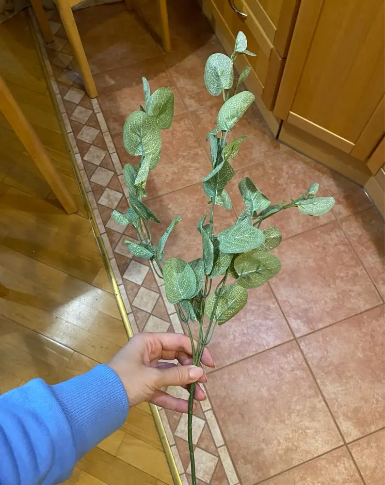 Красивая имитация листа эвкалипта, очень хорошее качество, очень хорошая ваза, я особенно рекомендую эту модель. Отличный продавец. Что из most plus