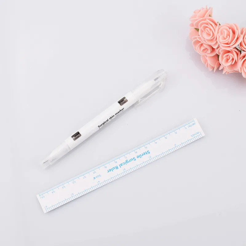 1 шт., хирургический маркер для кожи, маркер для бровей, авторучка для тату, маркер для кожи, ручка с измерительной линейкой, инструмент для позиционирования микроблейдинга