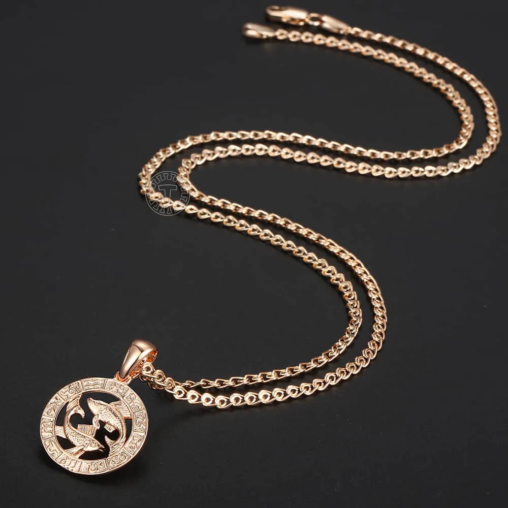 Горячая знак зодиака Рыбы ожерелье s 585 розовое золото кулон ожерелье мужские ювелирные изделия подарки GP286