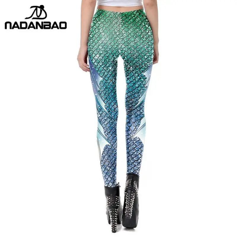 NADANBAO, новинка, леггинсы с галактикой, женские сексуальные леггинсы с русалочкой, леггинсы с рыбками, леггинсы для фитнеса, цветные леггинсы, эластичные леггинсы, размер