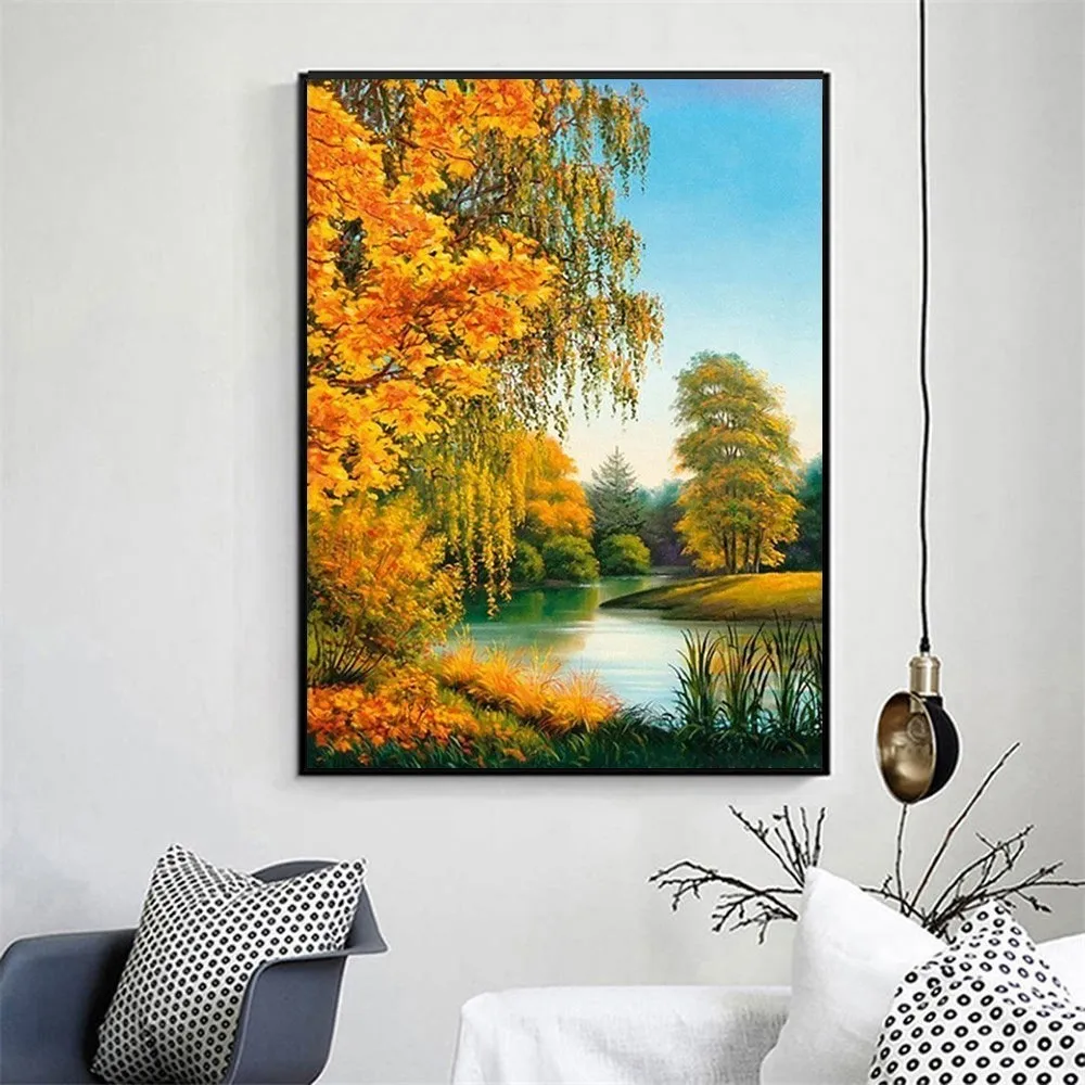 Алмазная вышивка Huacan, пейзаж, мозаика из страз, полноразмерная картина, украшение для осени
