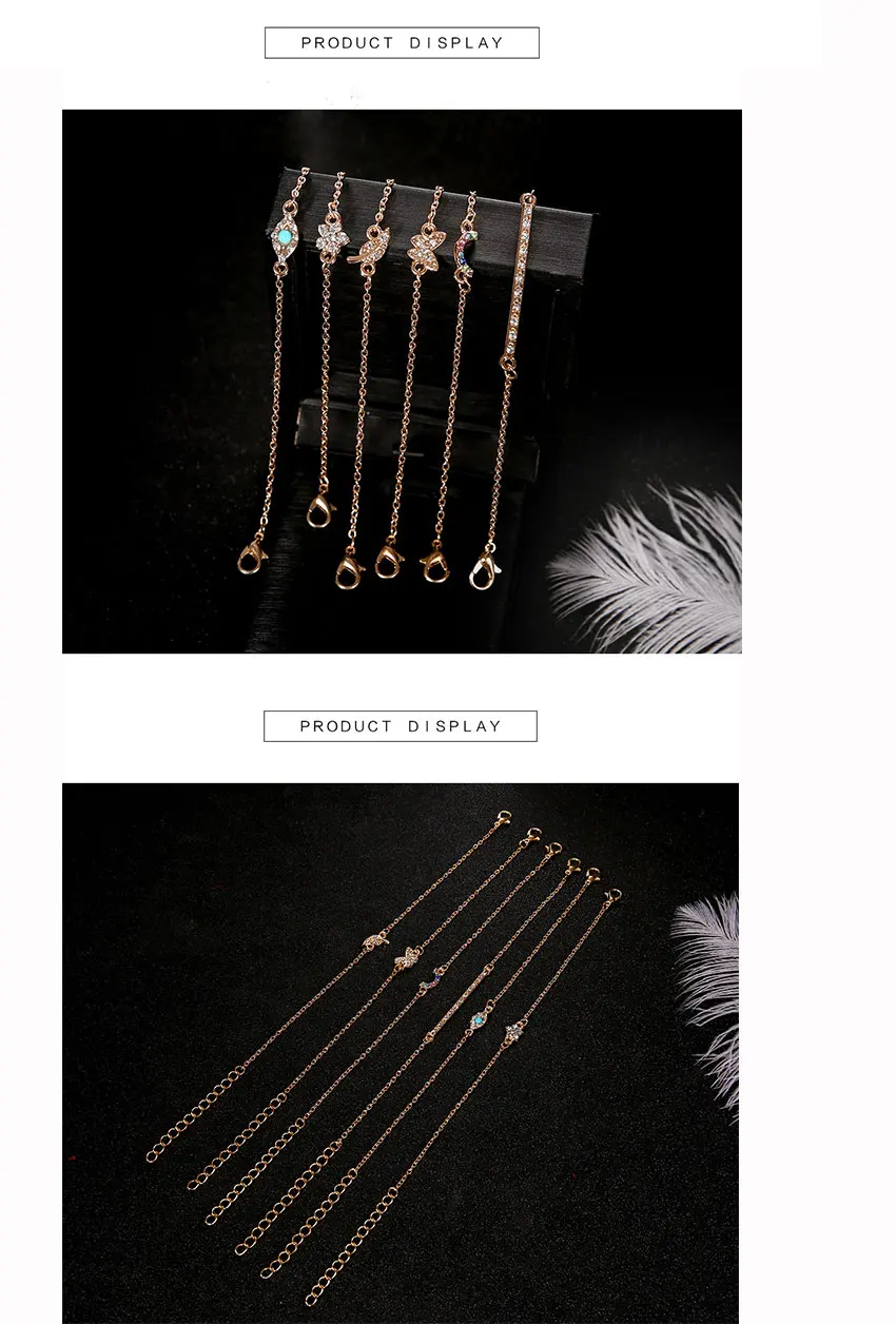 6 шт.партия женские изысканные хрустальные бабочки звезды листья драгоценные камни геометрия набор с золотым браслетом богемные винтажные ювелирные аксессуары
