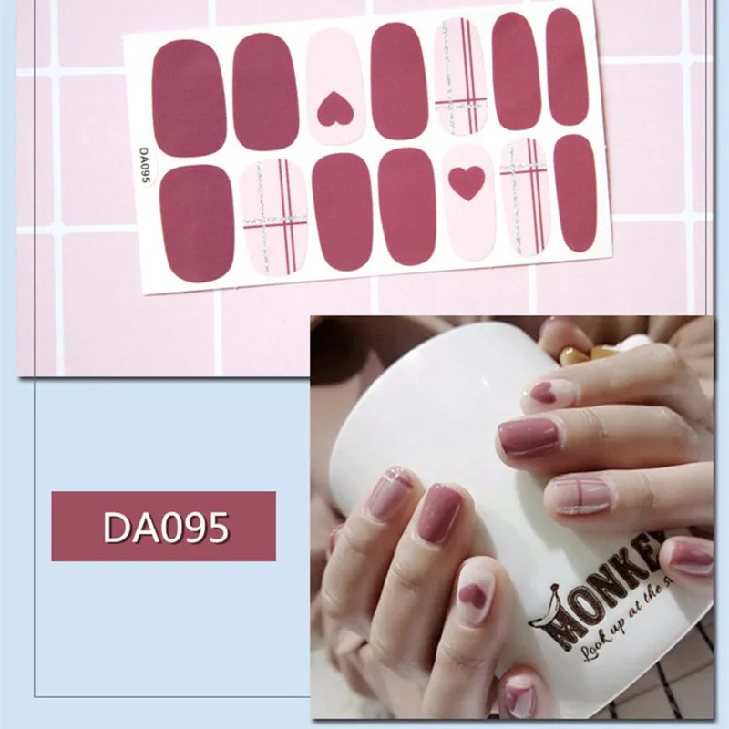 14 советы/лист Полный Обертывания Красный дизайн ногтей наклейки s наклейки Многоцветный клей наклейки для ногтей полоски DIY салон маникюр Прямая доставка