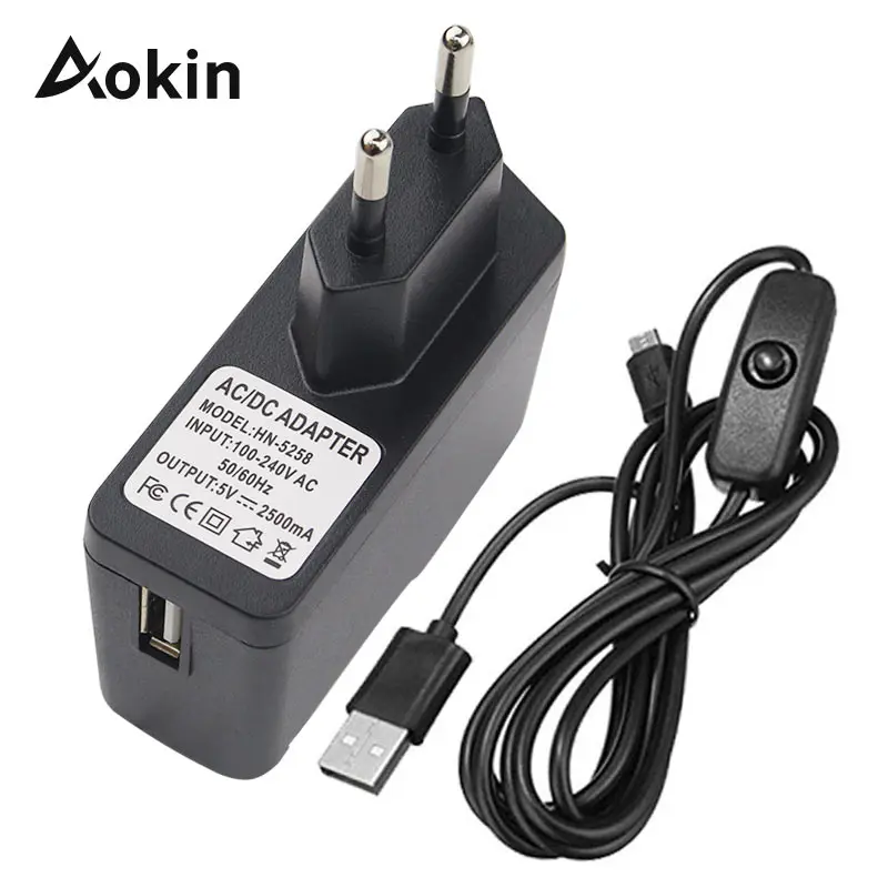 Блок питания переменного тока для Raspberry Pi 3, 5 В, 2,5 А, USB-адаптер для зарядного устройствапереключатель ВКЛ.ВЫКЛ., Кабель Micro-USB для быстрого питания + плюс