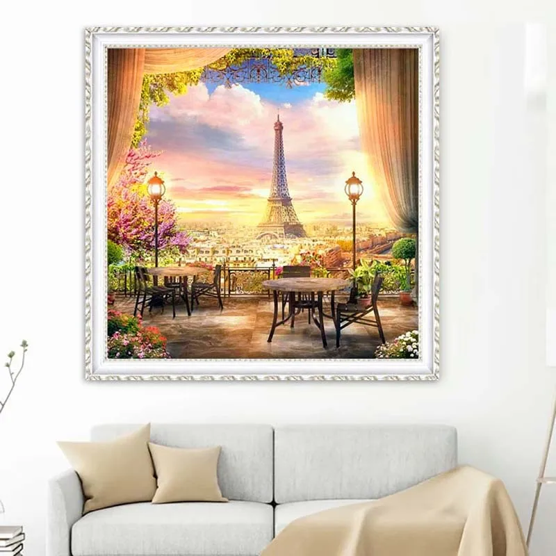 Картина из квадратных Страз "Париж, Франция, Эйфелева башня", 5D, Н...