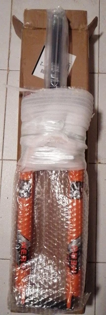 Ну, доставка действительно быстрая. Всего две недели. Я попросил, чтобы это было как отверстие Fox, и это пришло. Наклейки на месте. Очень легкий и выглядит лучше, чем есть на самом деле. Среди велосипедных людей они внимательно смотрят на меня, что это стоило мне всего 60 евро, но это так. На данный момент это соответствует. Он поставляется с небольшим предварительным просмотром воздуха, я полагаю, что он поставляется для азиатских 45 кг .... Таблица, которая приносит давление, не стоит много, и я заполнил его глазом. Когда я сделаю больше прогулок, я прокомментирую снова...