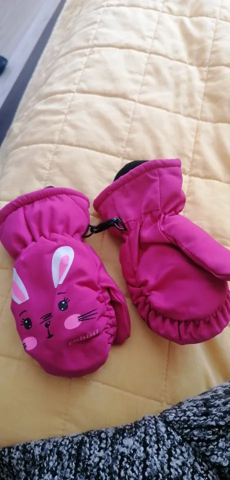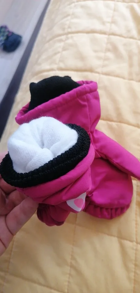 Заказывала на девочку 1,5 года. Нам оказались очень велики, где большой палец не очень тёплая ткань, тонкая подкладка в этом месте, может на следующий год удастся их поносить