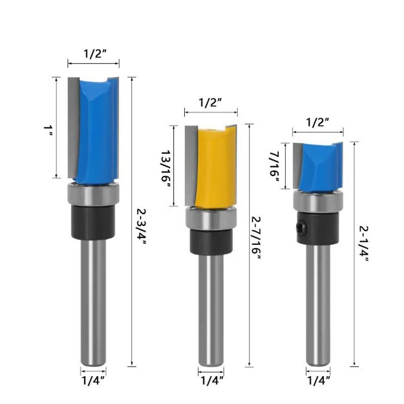 Фреза с хвостовиком 14 дюйма, 3 шт., 2 лезвия, обрезная деревообраб...