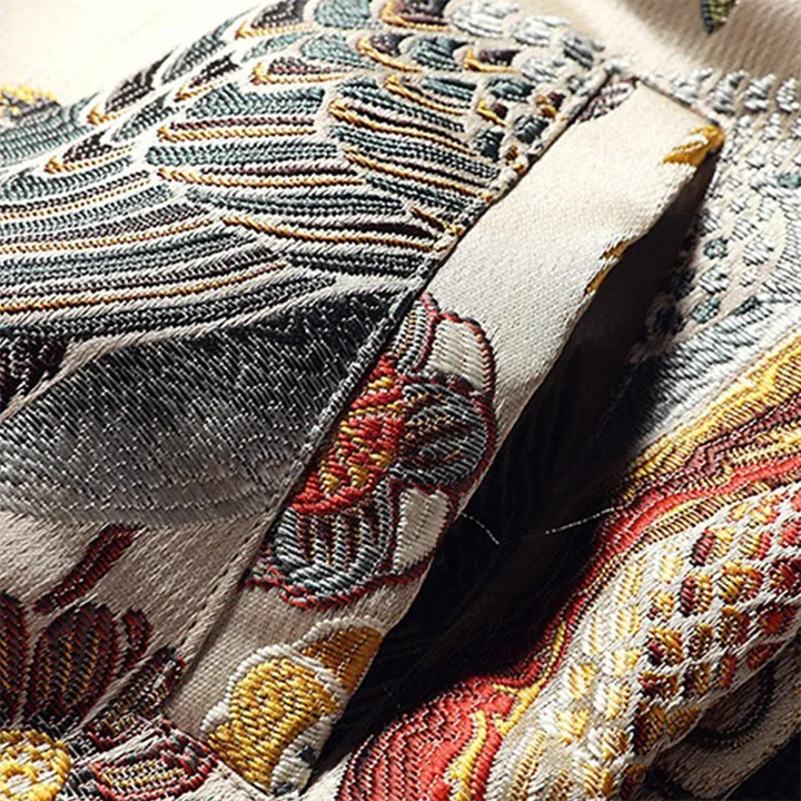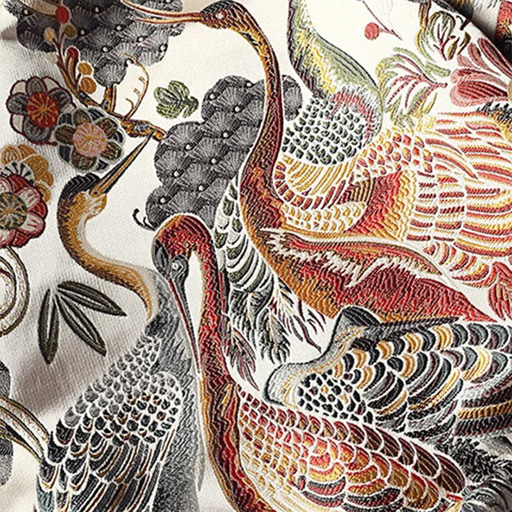Мужская куртка-бомбер в японском стиле, бежевая бейсбольная куртка-бомбер с воротником-стойкой и вышивкой Журавля, уличная одежда, размера плюс