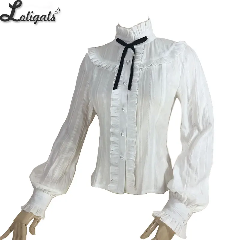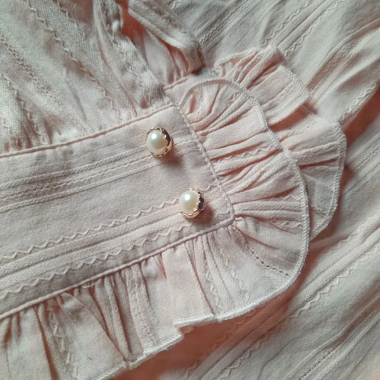 Красивая женская блузка в стиле Лолиты, белаярозовая блузка из жаккардового хлопка с длинным рукавом от Yiliya
