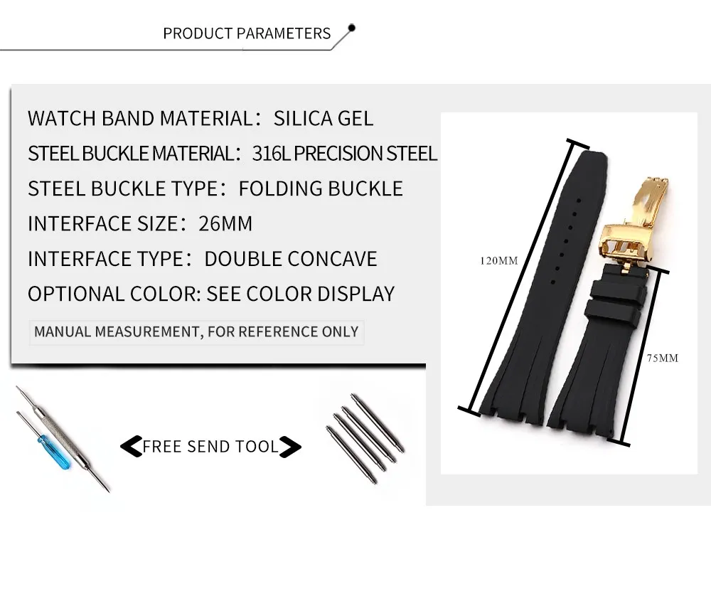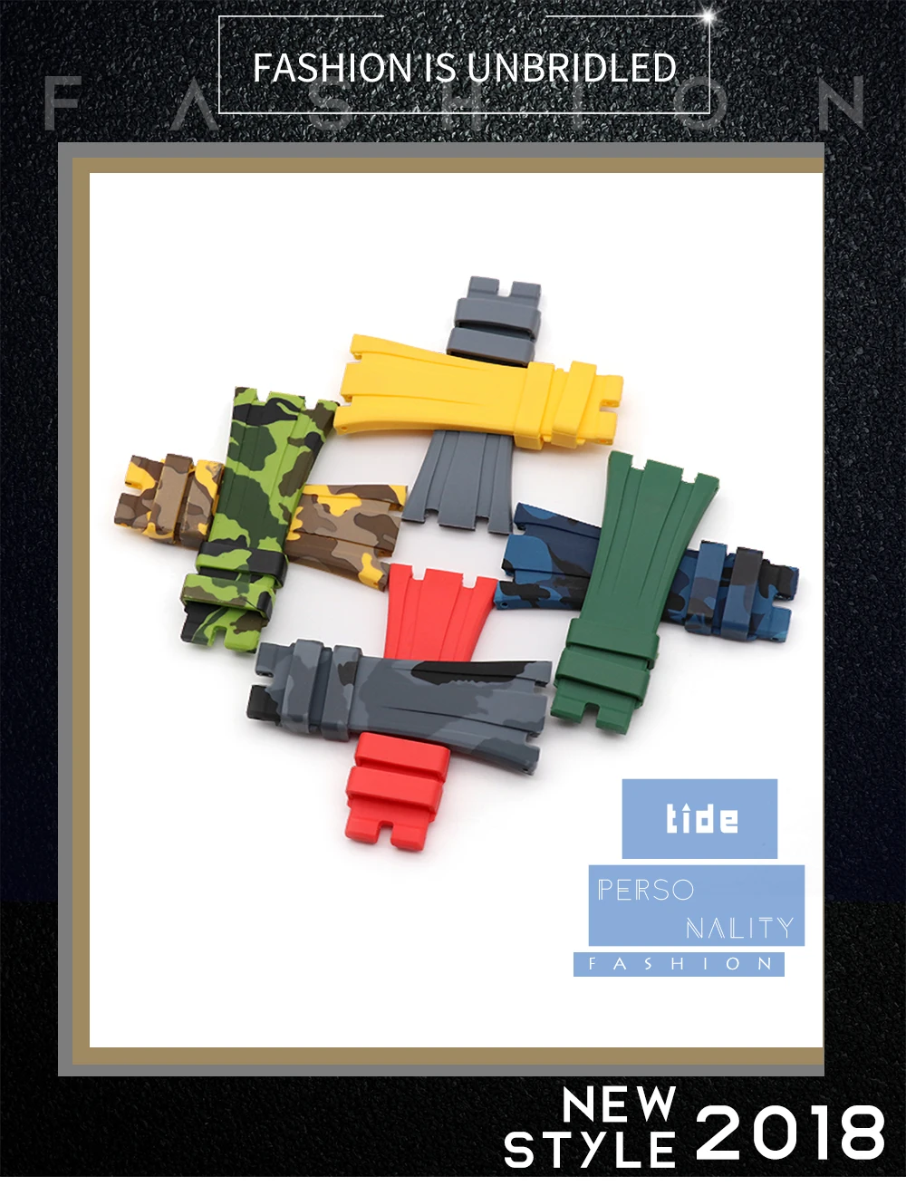Ремешок силиконовый для наручных часов, браслет из натурального каучука с цветной складной пряжкой, подходит для часов AUDEMARS PIGUET, аксессуары для часов, 26 мм