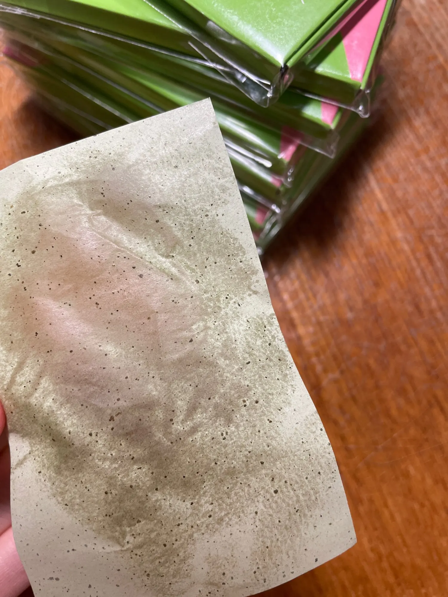 Посылка пришла быстро. Товар полностью соответствует описанию. У бумажек реально есть приятный аромат зеленого чая. Впитывают хорошо, для жирной кожи, что надо. Рекомендую.