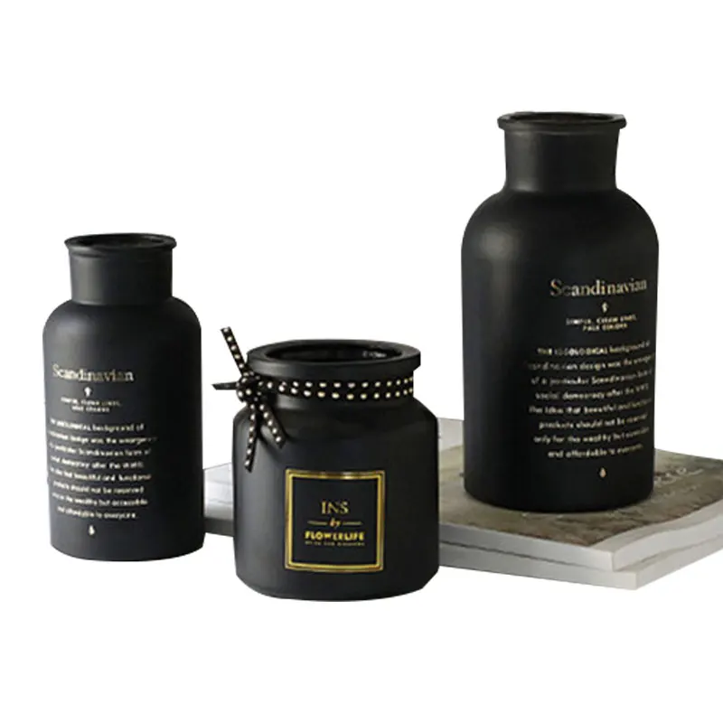Вазы стеклянные, черныебелые, в скандинавском стиле, для украшения дома