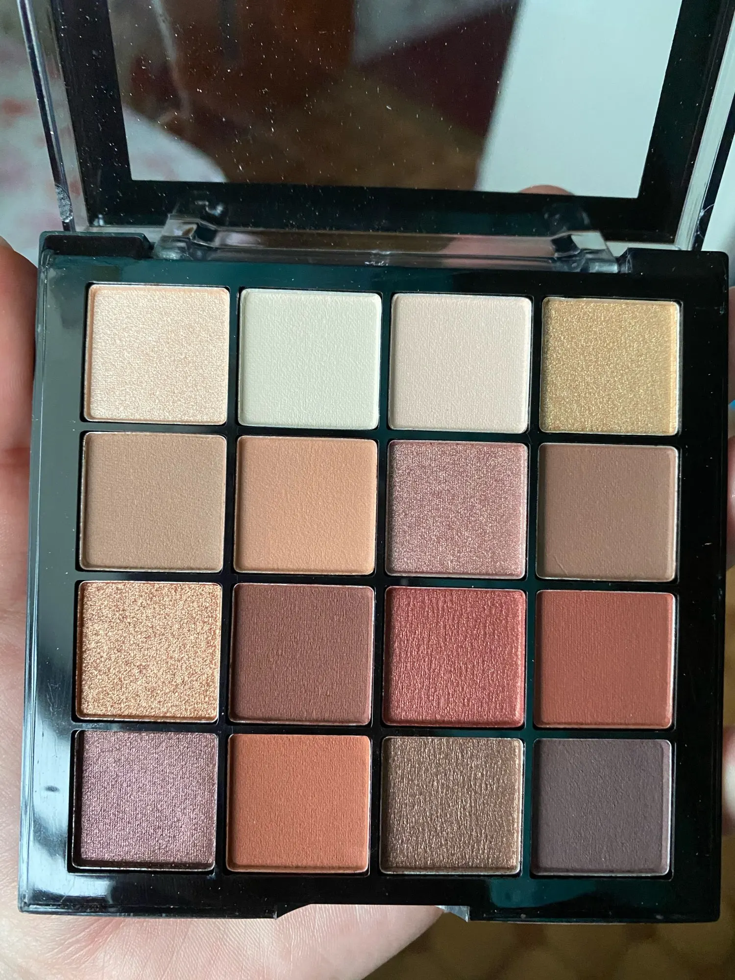 Палетка пришла довольно таки быстро, чуть меньше месяца. Была хорошо упакована, так что ничего не разбилось. Универсальные оттенки, некоторые шиммеры можно использовать как хайлайтер. Камера очень сильно "съедает" цвет, в жизни ярче. Очень классная палетка, однозначно рекомендую