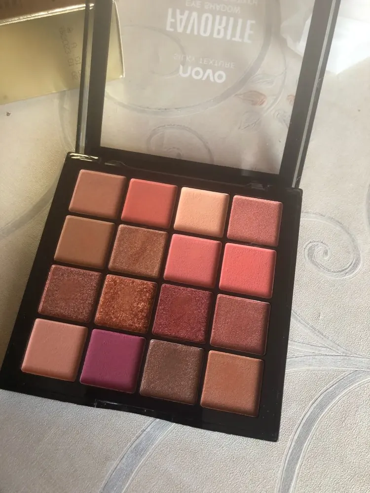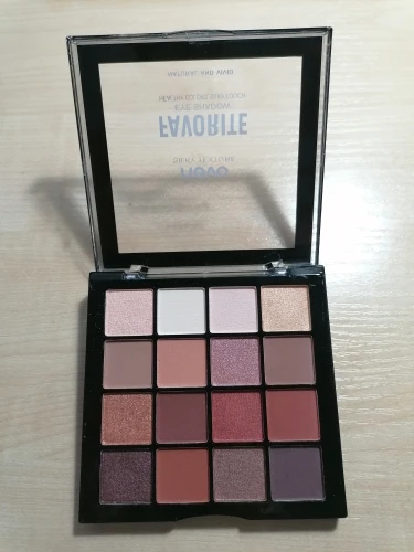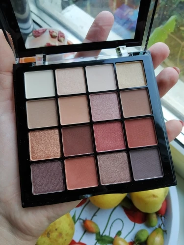 Тени очень понравились. Из 16 цветов 7 - шиммерных, остальные матовые. Пигментация хорошая. Коробочка сделана из тонкой пластмассы, мое мнение, что крышка очень быстро сломается. Доставка в Москву меньше месяца. Продавцу успехов в бизнесе.