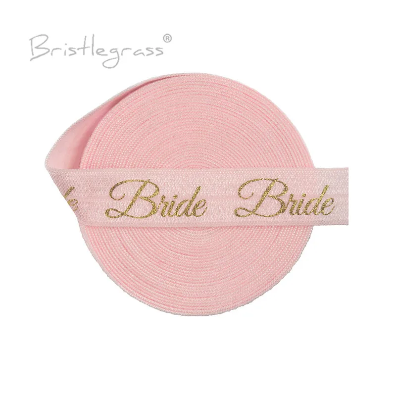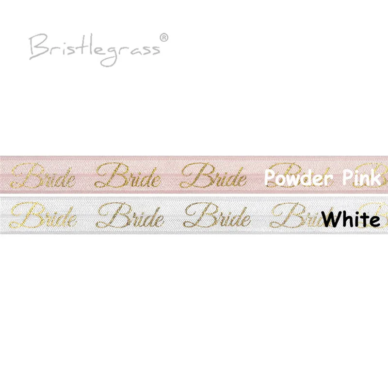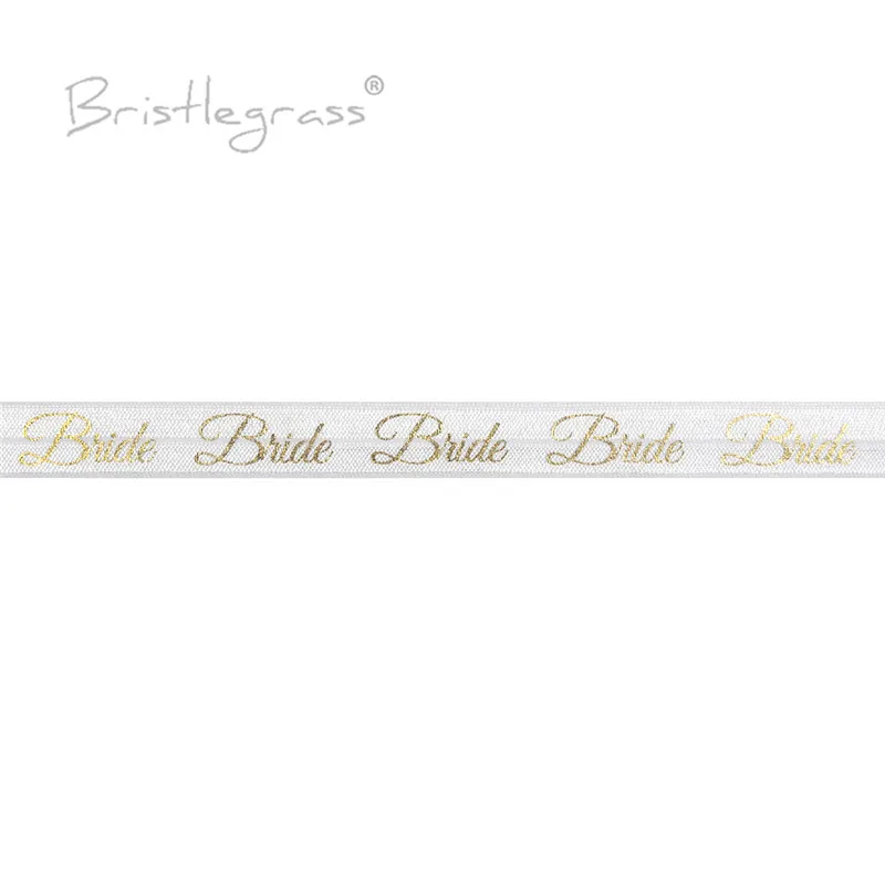 BRISTLEGRASS 5 ярдов 5/8 "15 мм Свадебная Золотая фольга с принтом FOE Foldover эластичная атласная лента из спандекса для свадебной вечеринки