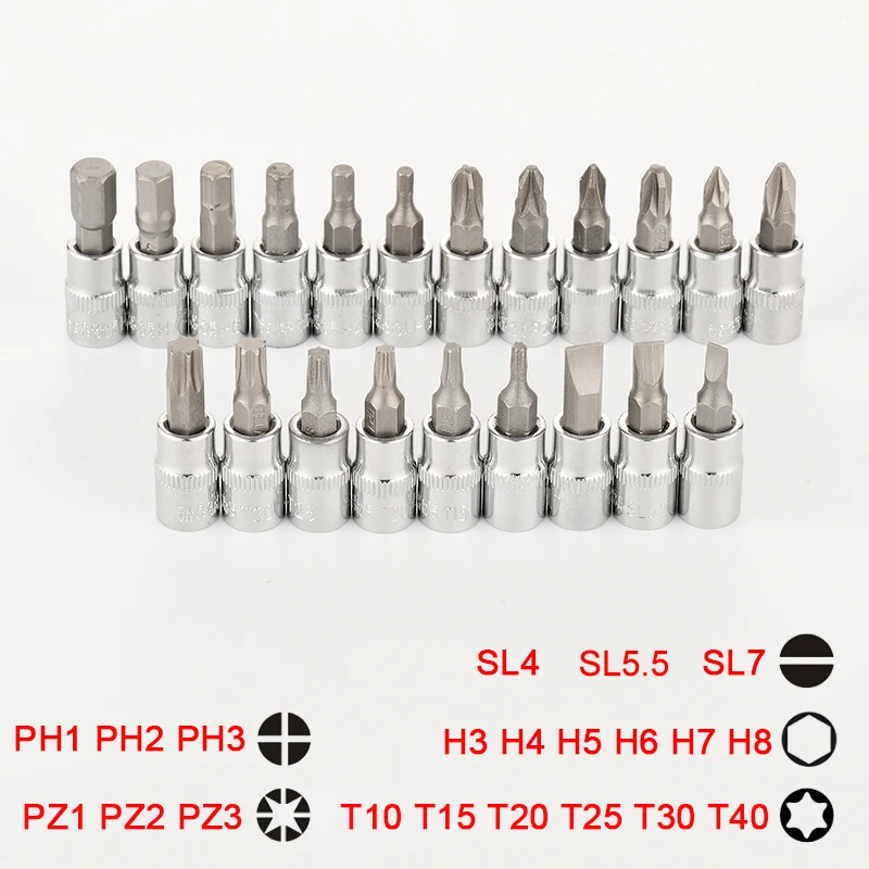 Комплект торцевых ключей, комплект из 21 звездообразный шлицевой 32 мм с шестигранной головкой Phillips Pozidriv, биты 14 дюйма, инструменты для ремонта автомобилей