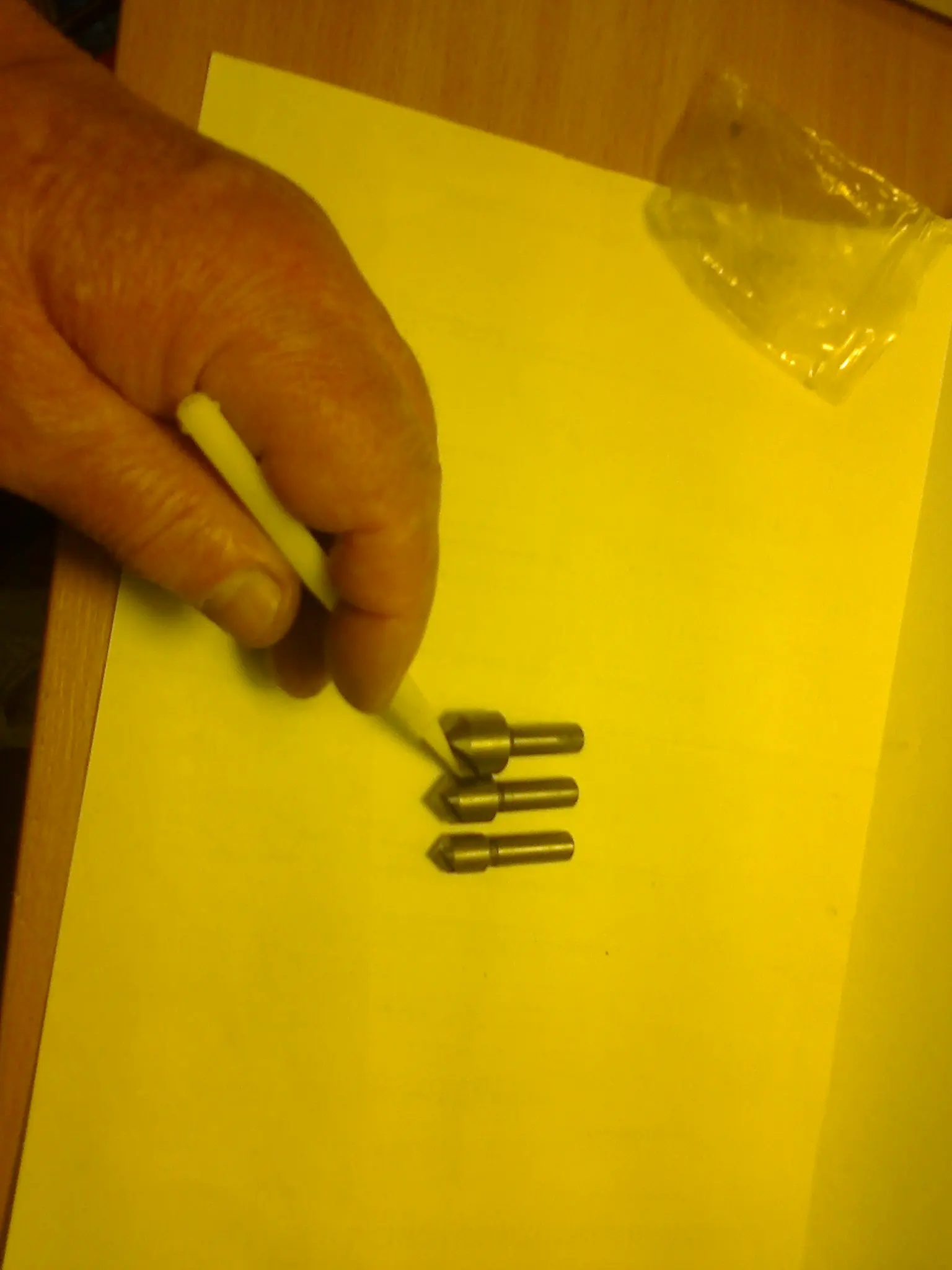 Товар описан точно, но по внешнему виду напоминает инструмент бывший в употреблении. Режущая кромка тупая, зенкеры грязные. Просверлил отверстия и попробовал зенковать. При небольшом нажиме фаска отверстия не снимается, при более сильном- вокруг отверстия образуется валик. За 6 евро получил ненужную вещь. Будете покупать- подумайте.