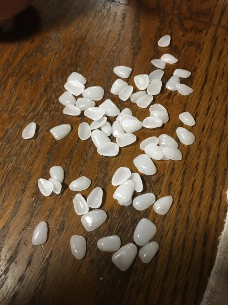 Доставка 3 недели. Продавец честный, порядочный, отзывчивый. По товару скажу, что надеть эти виниры на нормальный зуб не получится, как и другие продающиеся на Алиэкспресс даже с супер-пупер клеем, они будут выпирать, если свои зубы специально не подточены под виниры предварительно, но я так и предполагала. Я взяла для того, что бы закрыть дырку приклеив к мягкому пластику (продается в круглых гранулах на просторах Алиэкспесса) и зацепив этим же пластиком за соседние зубы, тогда этот зуб (типа мост) будет более похож на настоящий, чем если просто залепить дырку мягким пластиком.))