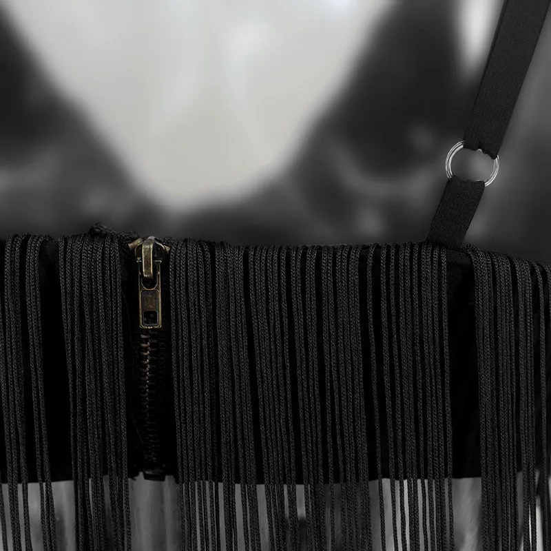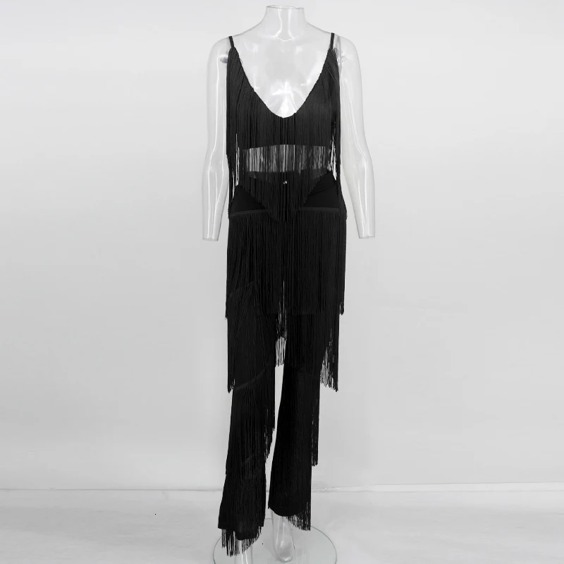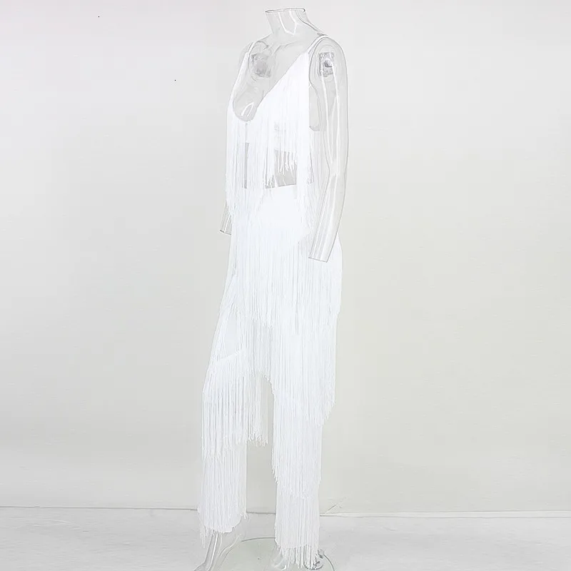 Tobinoone Женский комплект 2 шт. с кисточками укороченный топ и брюки женский комплект белый черный без задника сексуальный летний наряд комплект из двух предметов 2018