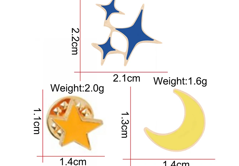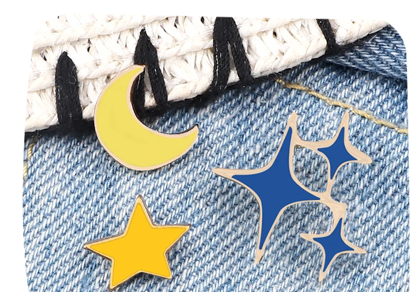 Брошь на лацкан детская, металлическая, с эмалью, в форме звезды, Луны