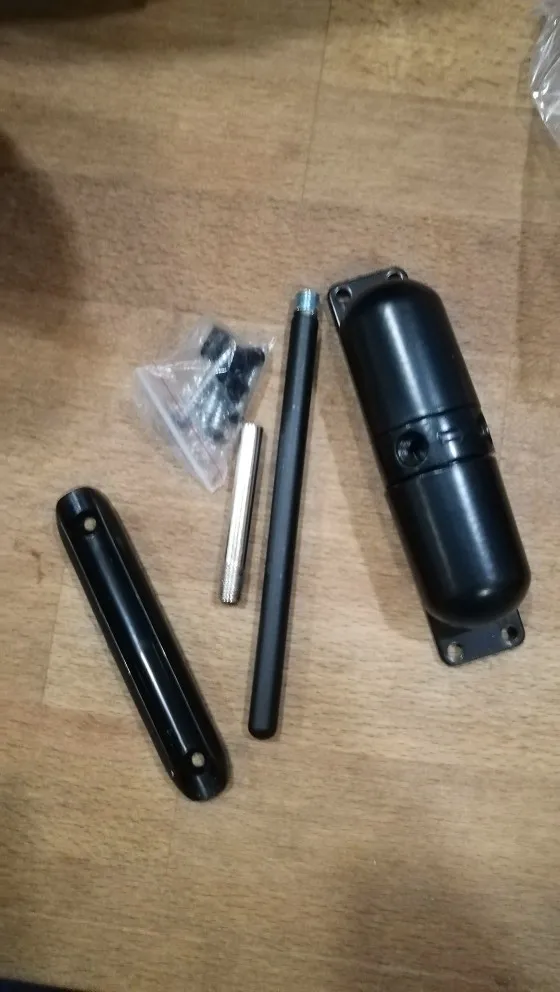 ещё не устанавливали. ответная часть из пластика. сам доводчик металлический. тяжеленький
